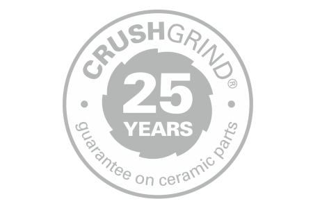 Le moulin en céramique de haute qualité de CrushGrind® est synonyme de durabilité exceptionnelle et de mouture précise. Réglable en continu – de la poudre fine au grain grossier – et grâce aux composants robustes en céramique, il est entièrement exempt de rouille et d'usure. Le fabricant accorde une garantie de 25 ans.